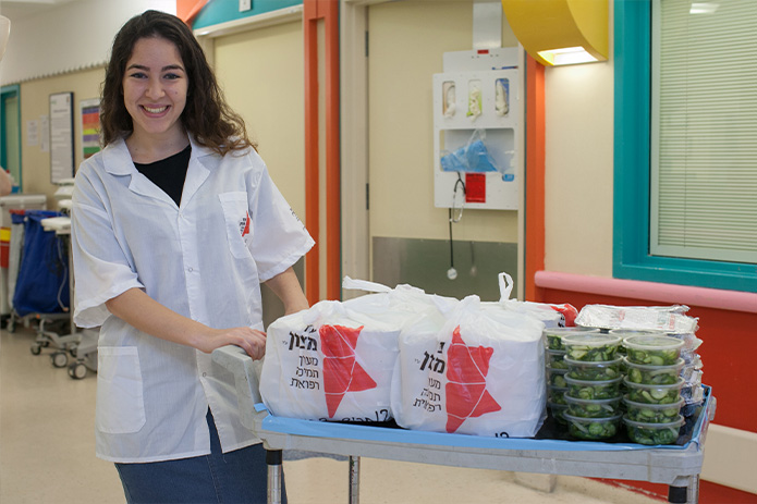 Lottie’s Kitchen prepares hundreds of meals, sandwiches and snacks every day for families of sick and hospitalized patients. Dedicated Ezer Mizion volunteers deliver the food to hospitals and the homes of sick people, bringing encouraging words and emotional nourishment along with the nutritious food.